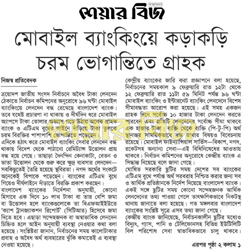 দেখছেন ০২-০৩-২০২৬ তারিখের শেয়ার বিজ প্রিন্ট ভার্সন
