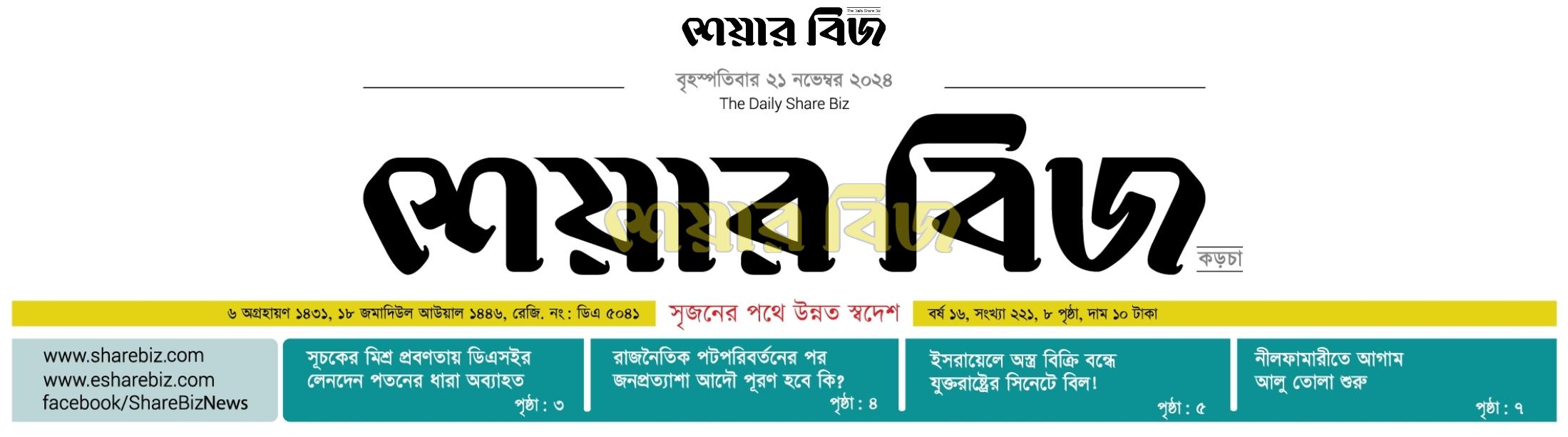 দেখছেন ০১-০৩-২০২৬ তারিখের শেয়ার বিজ প্রিন্ট ভার্সন