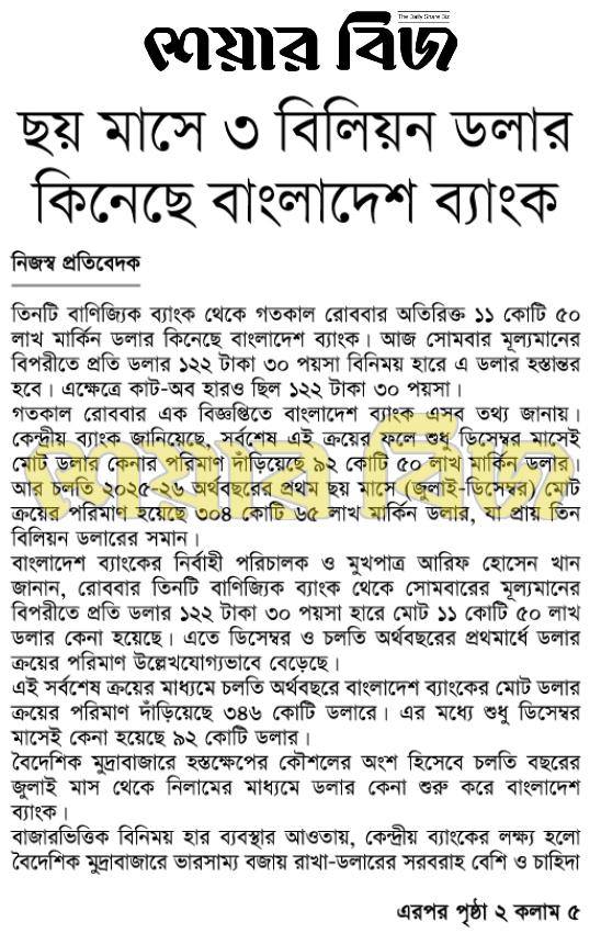 দেখছেন ২৭-০২-২০২৬ তারিখের শেয়ার বিজ প্রিন্ট ভার্সন